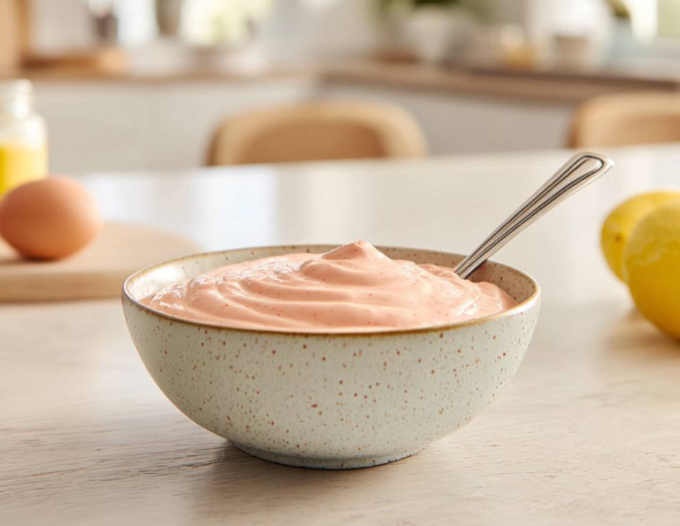 Je nach weiterer Verwendung kann die Mayonnaise auch mit Essig oder Suppe verdünnt oder überhaupt durch Sauerrahm ersetzt werden.
